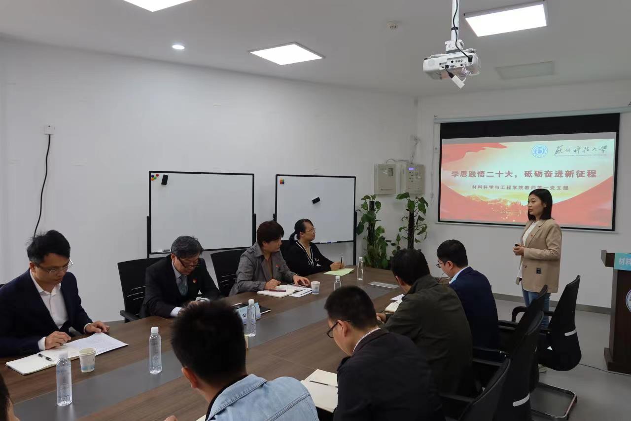 党支部书记胡俊蝶汇报了支部基本情况、党建“123规划”工作思路、及未来工作计划,并结合相关视频领学党的二十大报告中“关于教育、科技、人才的论述”的内容。党员教师和入党积极分子代表结合自身工作进展分享了学习感悟。