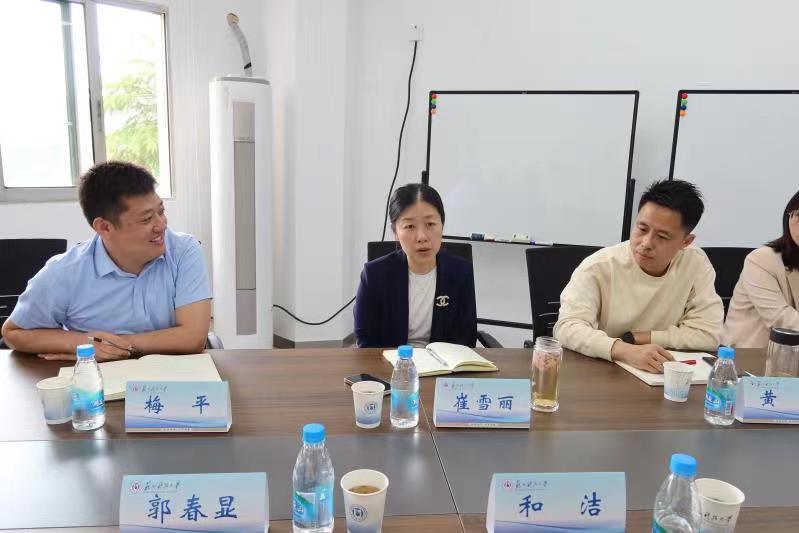 常务副经理郭春显从公司定位、党建引领、团队建设、团队队伍建设、科技创新、教学工作、员工培养以及公司特色打造等方面进行了汇报。党总支副书记兼副经理李永丹从公司员工工作取得的成绩、目前工作中存在的难点以及今后工作发展思路进行了汇报。副经理杨晓刚从专业建设、双创育人等方面汇报了公司“大学工”工作格局下取得的成绩,同时对招生宣传提出建议。与会人员围绕员工成长成才进行了深入的交流和探讨。