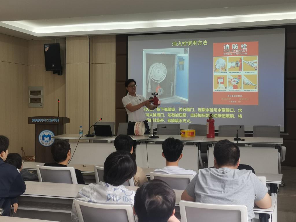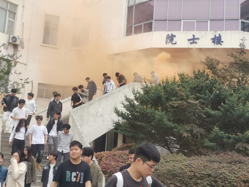 消防安全演习环节,校保卫处消防管理科卢致远以高校典型火灾案例为切入点,剖析实验室操作不规范、违规用电、占用消防通道等隐患后果,重点讲解校园火灾预防措施。理论培训后,与会人员开展了疏散逃生演练实战,在模拟烟雾弥漫环境下,全体人员撤离至指定区域。在灭火实操环节,卢致远现场演示干粉灭火器"提、拔、握、压"操作法,师生分组实践油盆灭火,掌握"灭早、灭小"技巧。