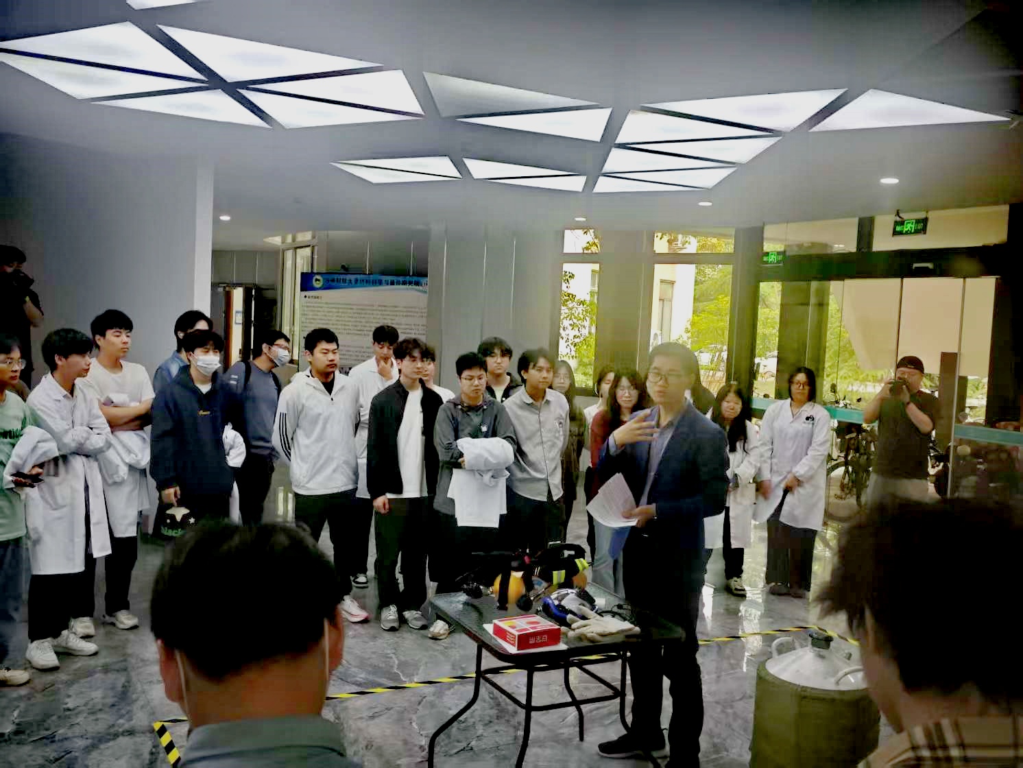 为增强师生消防意识,提升实验室事故应急处置能力,4月24日,在公司资产与后勤管理处、保卫处等部门的指导下,云顶国际yd222线路检测中心以"强化风险意识,筑牢生命防线"为主题,组织开展"实验室液氮泄漏及冻伤事故应急演练"及消防安全教育培训。副经理叶常青主持活动,100余名师生参加演练。