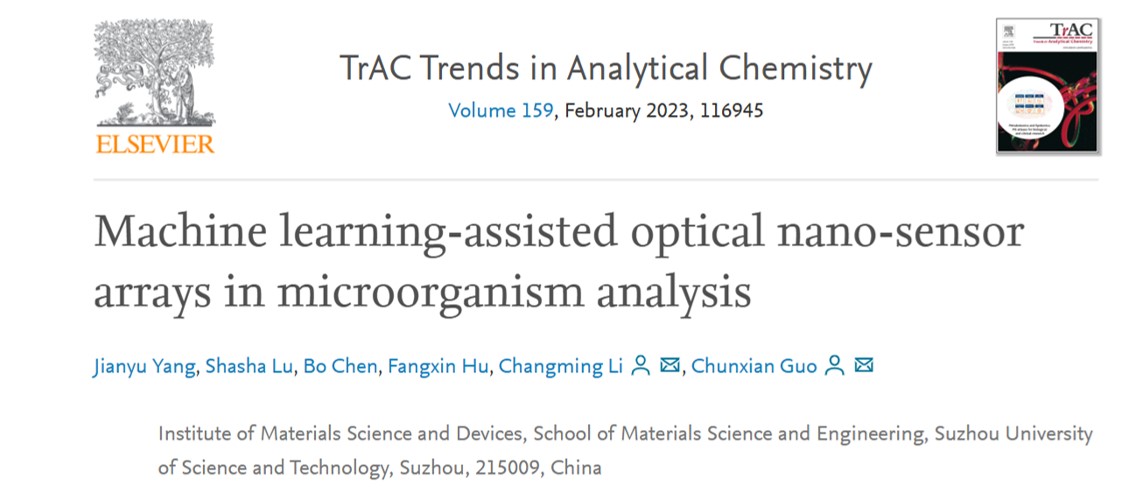 近日,公司云顶国际yd222线路检测中心李长明教授、郭春显教授团队的最新研究成果发表在分析化学领域知名期刊《Trends in Analytical Chemistry》(IF=14.908)上,相关成果题目为《Machine learning-assisted optical nano-sensor arrays in microorganism analysis》。杨健宇博士为第一作者,李长明教授、郭春显教授为通讯作者,公司为第一通讯单位。