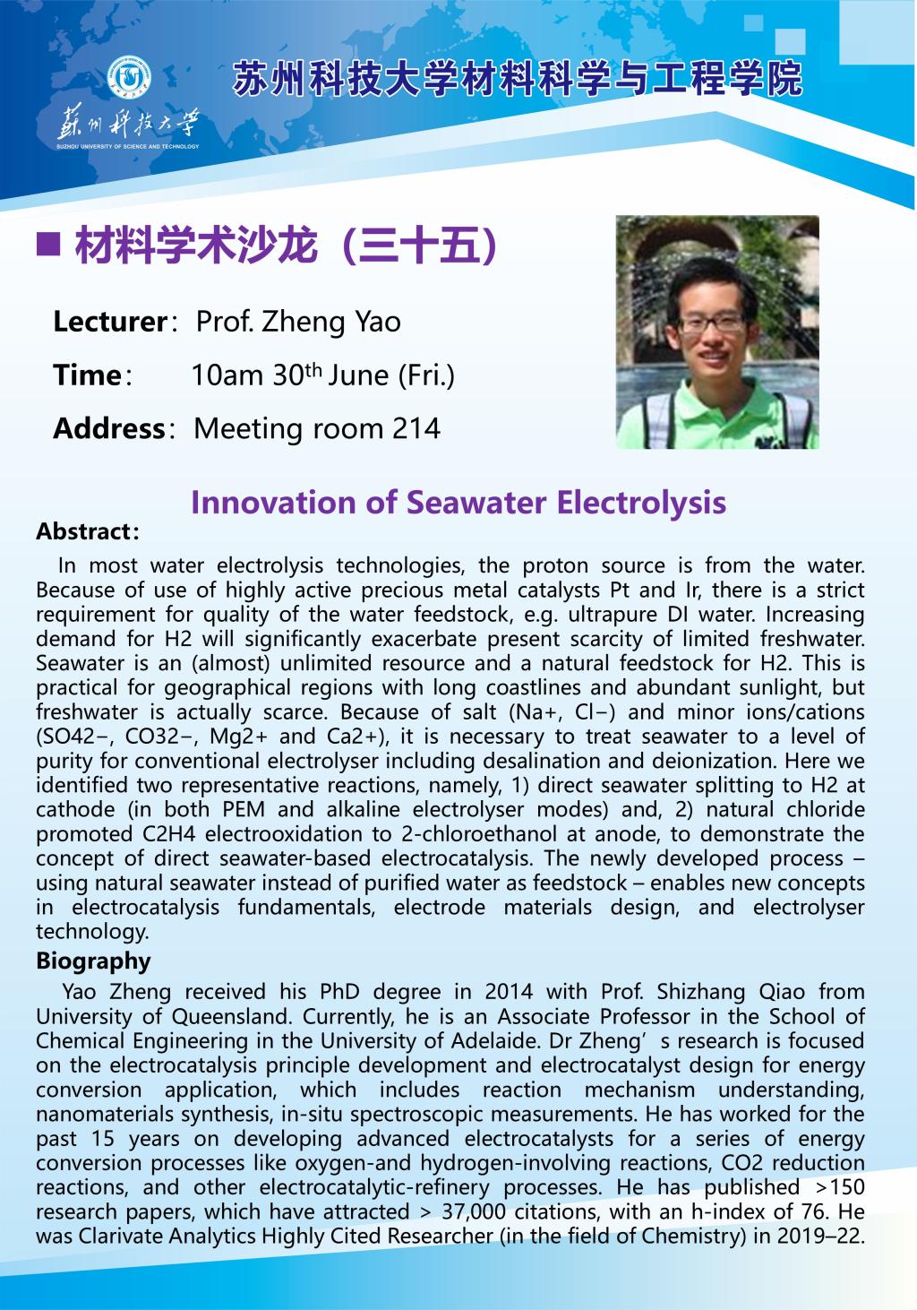 材料学术沙龙三十五:Innovation of Seawater Electrolysis