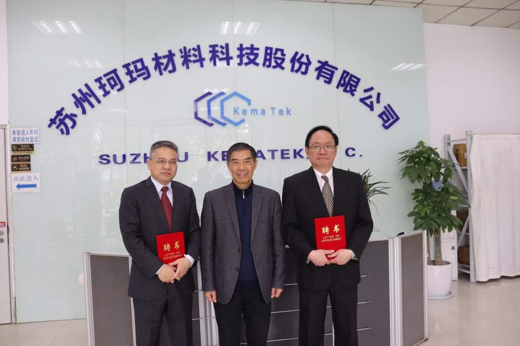 3月21日上午,云顶国际yd222线路检测中心陈志刚教授及领导班子成员赴苏州珂玛材料科技股份有限公司(简称珂玛)走访调研,就校企合作等事宜进行了深度交流。珂玛董事长刘先兵、研发副总施建中等出席会议。