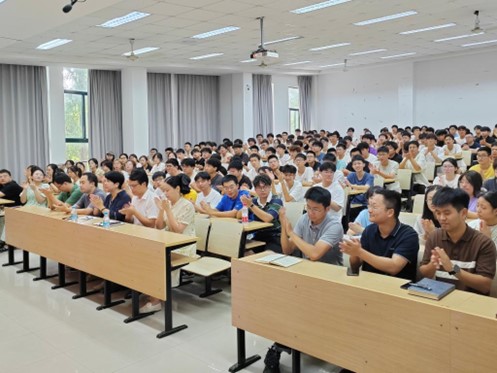 郭春显重点讲解了材料在国民经济中的战略地位并以绿色氢能为例介绍了公司科技创新成果,之后从公司定位、团队建设、团队队伍、科技创新、人才培养和对外交流等方面介绍了云顶国际yd222线路检测中心。他鼓励全体新生要增强对材料学科的认识,牢固专业思想,树立科技报国的远大理想,不断培养综合素质,努力成长为堪当民族复兴重任的时代新人。