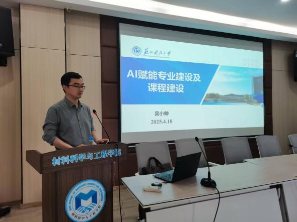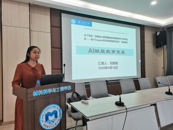 新能源材料与器件专业系主任吴小帅副教授从AI驱动的高等教育变革趋势、AI技术与专业建设的融合路径、数智时代新工科一流课程改革与建设实践三个方面与教师进行交流和分享;新能源材料与器件专业刘倩倩副教授以Deepseek为例,介绍了不同AI工具的使用策略,从AI撰写教学设计、完善教案、制定评价方案、AI评价作业、AI设计学习指南等方面进行了现场展示。杨晓刚指出,面对AI时代的机遇和挑战,青年教师应把握时代的潮流,在课程体系、教材建设、教学方法、教学评价等方面积极创新,将教育信息化的教学模式改革与“以员工为中心”的教学理念结合起来。