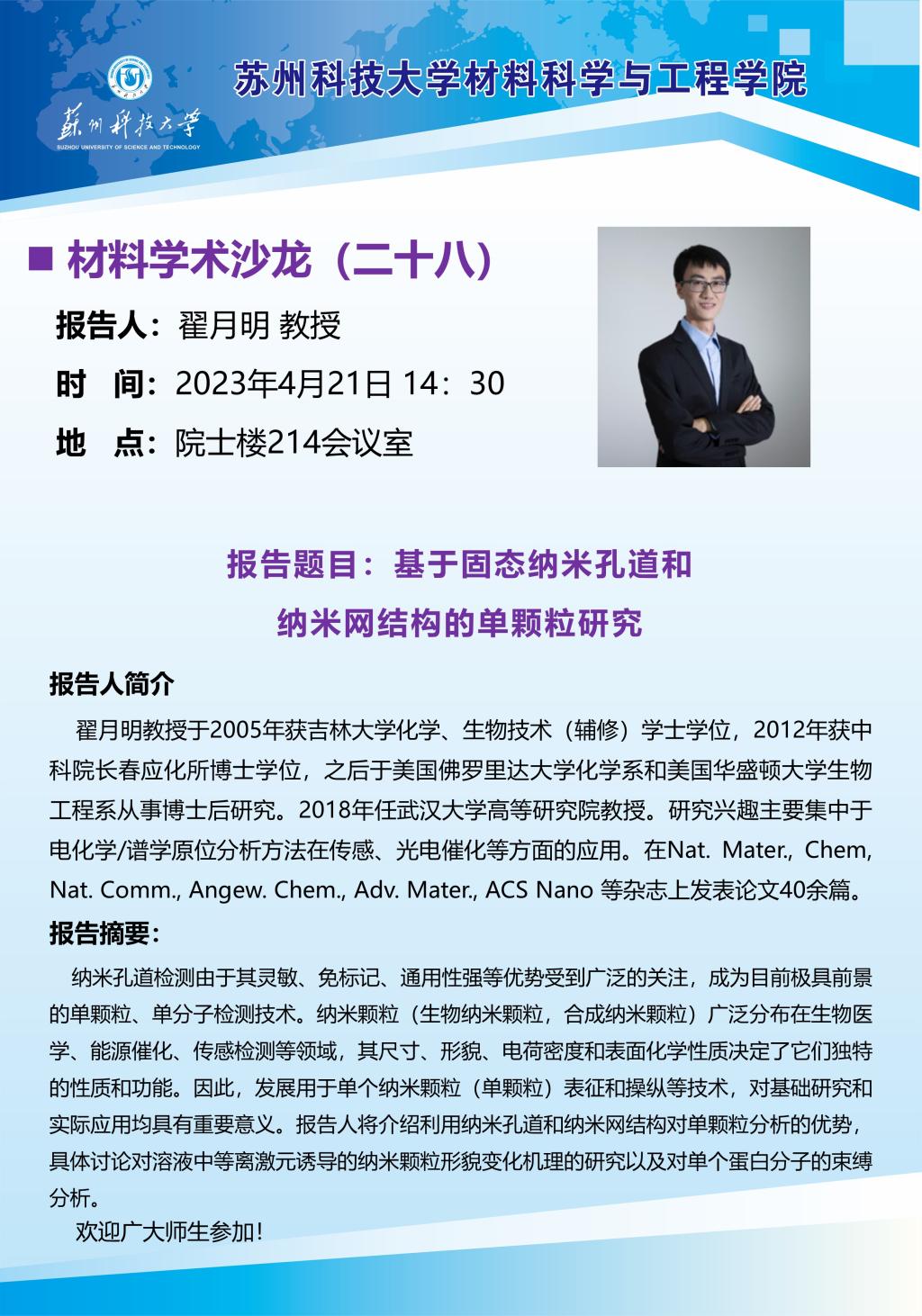 材料学术沙龙二十八:基于固态纳米孔道和纳米网结构的单颗粒研究