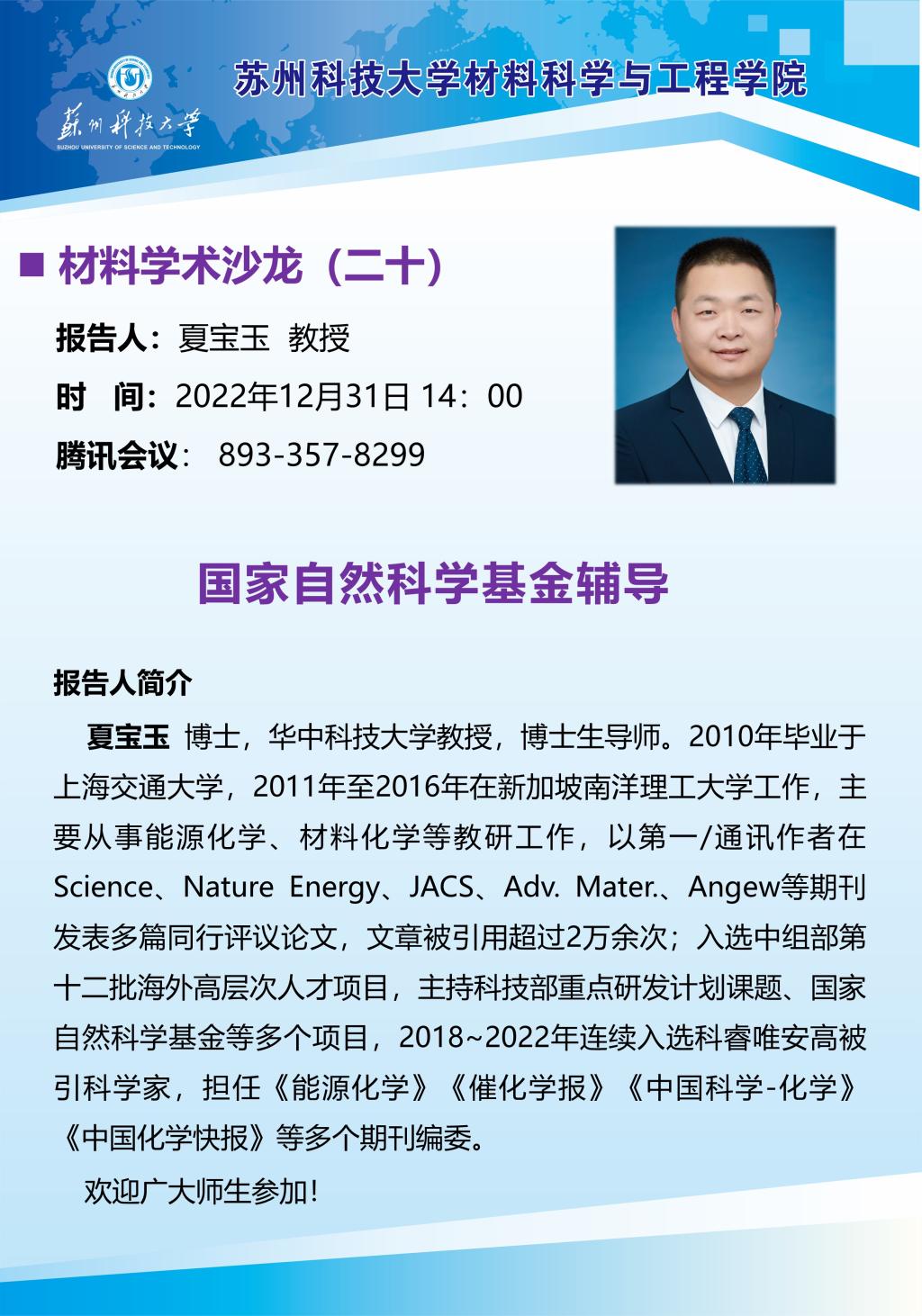 材料学术沙龙二十:国家自然科学基金辅导