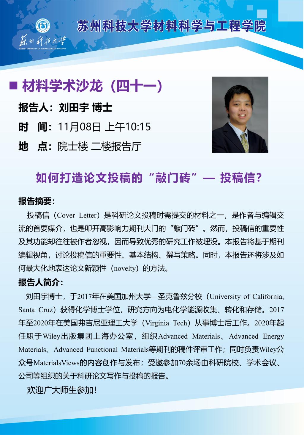 材料学术沙龙四十一:如何打造论文投稿的“敲门砖”— 投稿信?