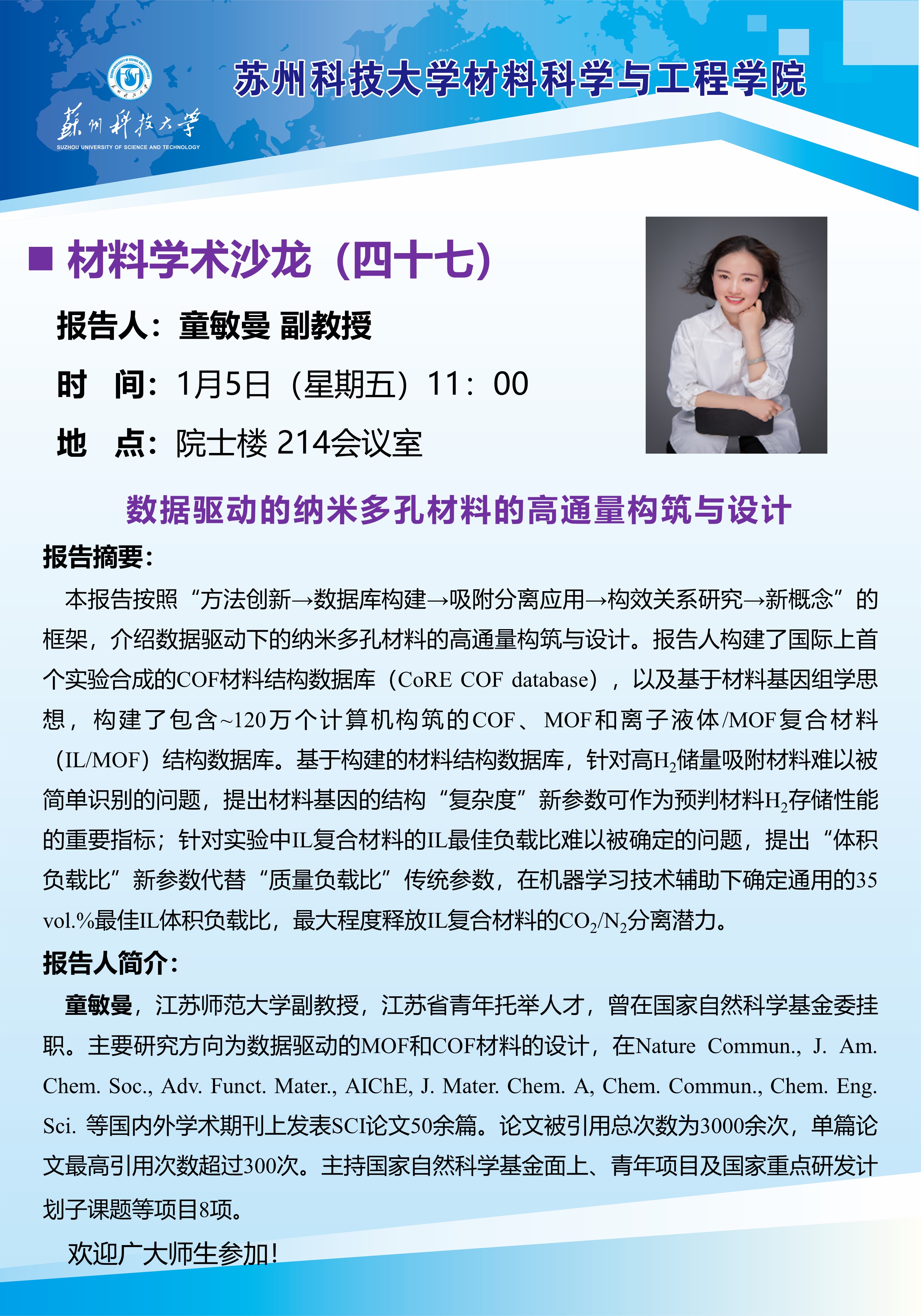 材料学术沙龙四十七:数据驱动的纳米多孔材料的高通量构筑与设计