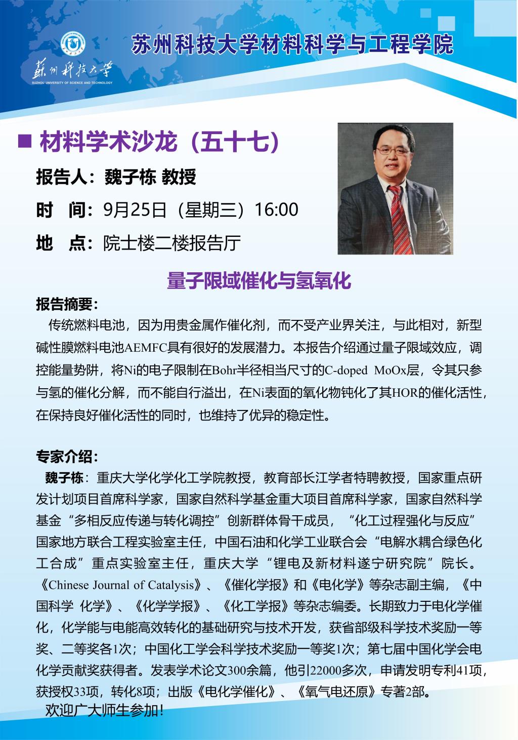 材料学术沙龙五十七:量子限域催化与氢氧化